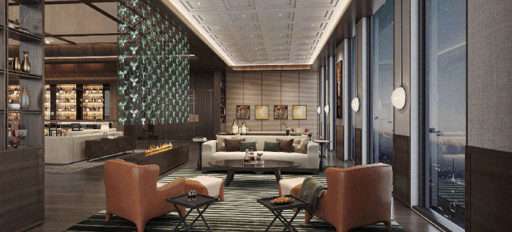 涵盖酒廊、星光泳池、健身等功能,客堂挑空设想,